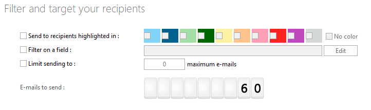You define in this area the filters you want to use during sending. When you check / uncheck filters, the number of recipients displayed in the “Emails to send” area changes to reflect your choices. Click on it to display the filtered list of recipients to whom you will send your messages.