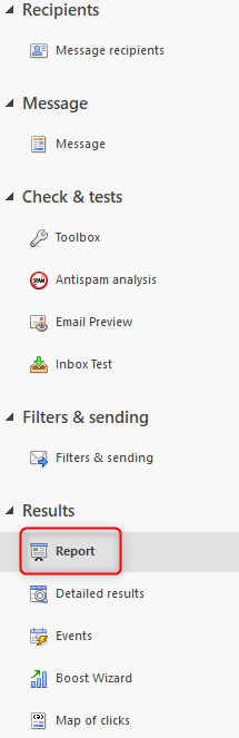 To access the tracking report, click on “Results” (on the left) then “Report”: